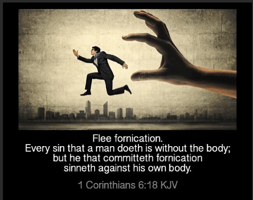 “Flee fornication. Every sin that a man doeth is without the body; but he that committeth fornication sinneth against his own body.”